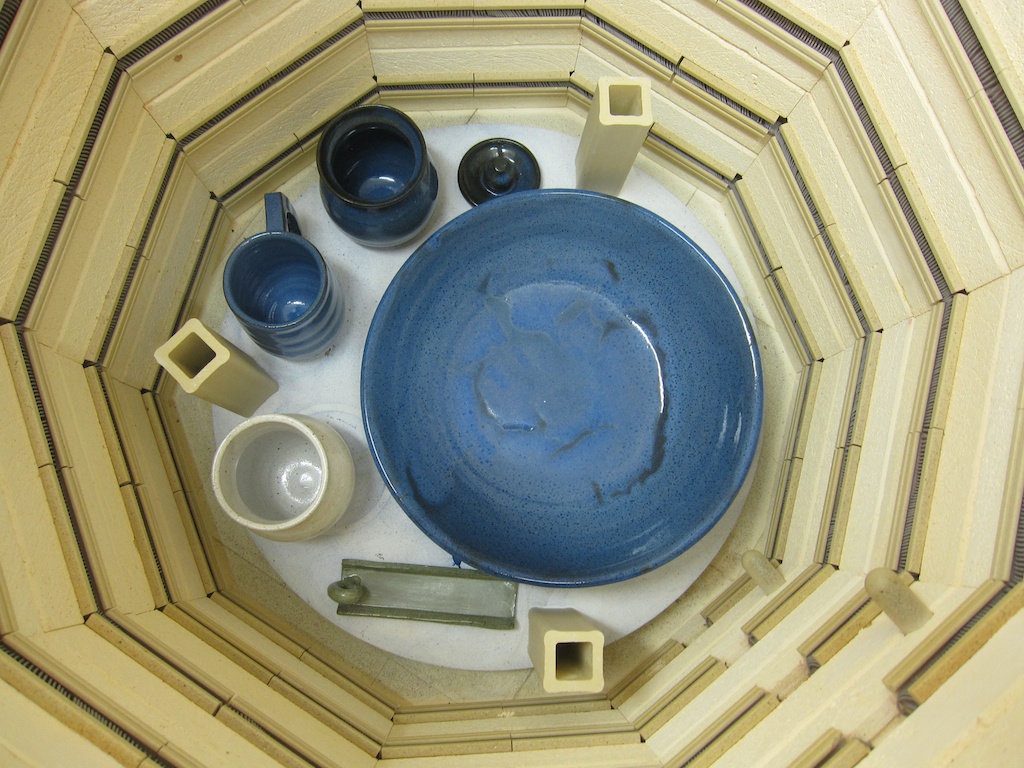 I opened the kiln this morning. The firing went well. A couple experiments turned out very well. I’ll post more about them later when I have good photos. A couple experiments turned out no so well. Everything survived, and the shelves only have the odd drip here and there. Overall, quite a happy result. Here are a few photos from the studio and the results. Complete set of photos on Flickr coming soon.