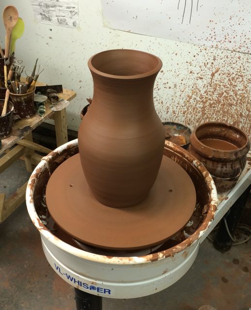 OK. So it wasn’t actually on Thanksgiving, but I did get to throw a bit today. Some plates, mugs, a set of lawn lantern parts and, for me, a big jar are all drying a bit for trimming. It was fun to get a little time to focus on making pieces again. The big jar was a nice surprise. I thought I’d messed up when joining the top cylinder to the bottom vase. I decided to work it until it collapsed or stood up, and it finally smoothed out and stood up. Fingers crossed for it. I’m looking forward to getting back to trim everything, especially the lantern. They’re fun. I have some ideas for this one.